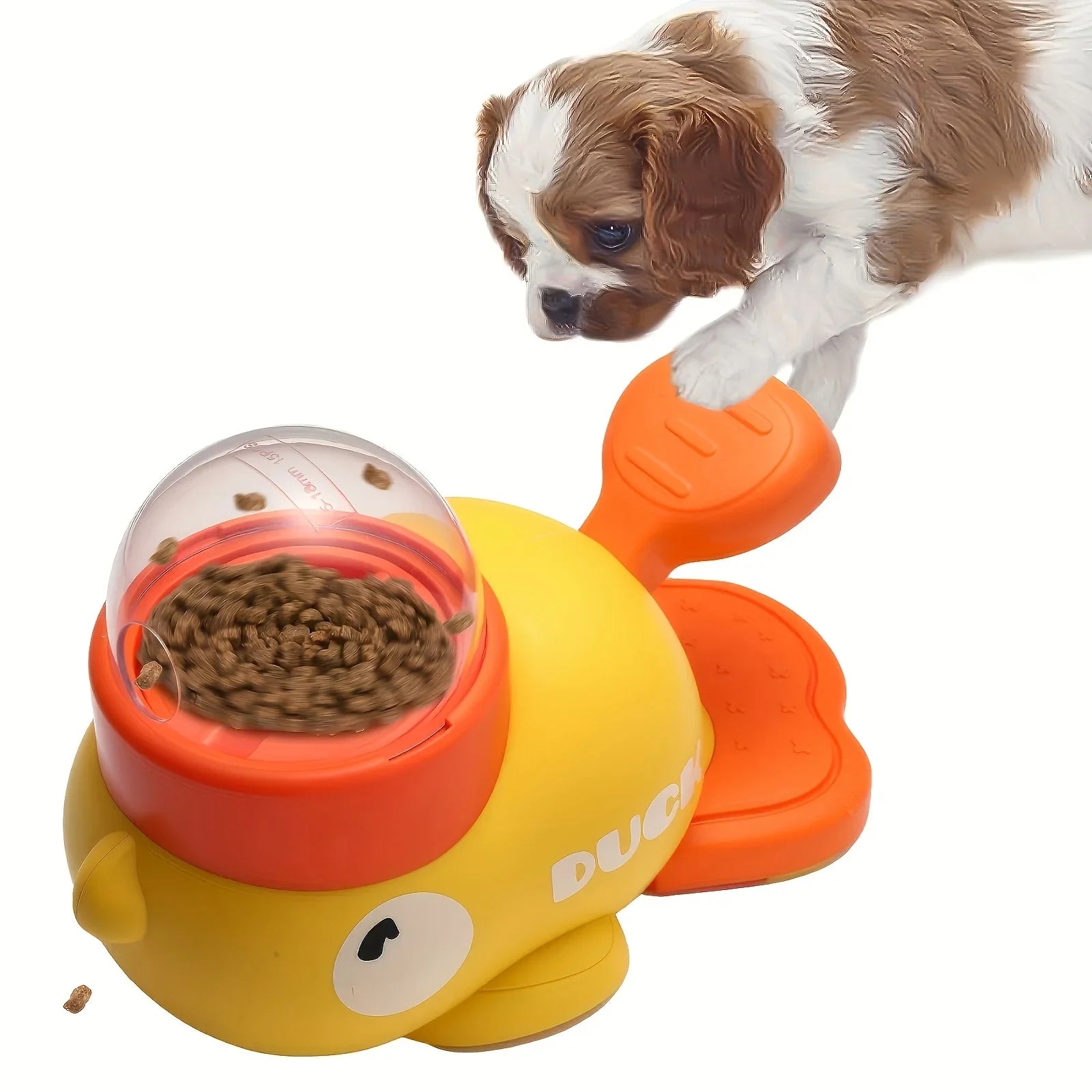 Duck-Shaped Interactive Dog Food Dispenser Toy – Keep your dog happy, active, and healthy! This treat dispensing dog toy is shaped like a cute duck and designed to stimulate your pet’s mind while promoting slow feeding. Simply press or rotate to release kibble or treats, turning mealtime into an exciting game.